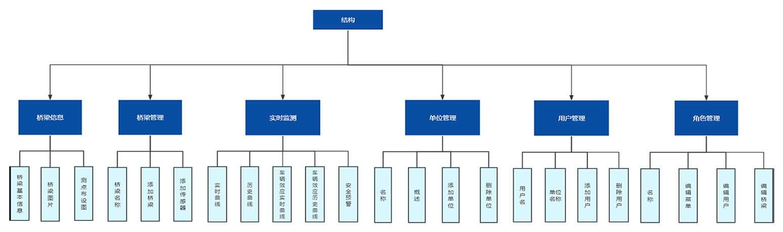 桥梁信息包括桥梁名称、桥梁全长、桥梁宽度、桥梁组合、桥跨组合、桥梁荷载、竖曲线半径、桥面横坡、抗震等级、通航等级、设计洪水频率、设计风速和桥梁图片以及测点布设图