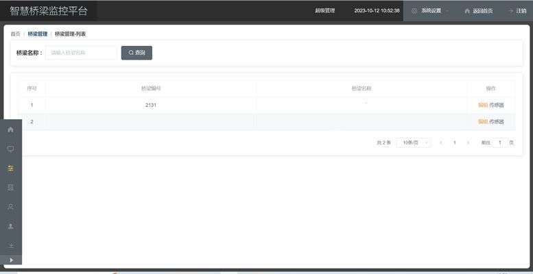 能够进行桥梁的搜索,以及添加新的桥梁、查看传感器的显示编号、频率、预警值、橙色预警值以及修改传感器的参数。