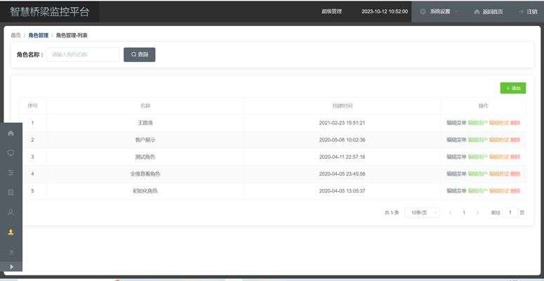 编辑菜单,显示菜单栏的导航数量,编辑用户,显示用户的数量,编辑桥梁,显示桥梁显示的数量以及删除角色。
