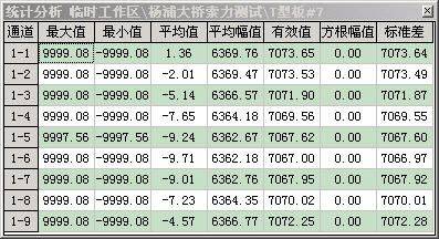 统计分析可以对各通道进行统计,并将统计结果以表格的形式显示出来。